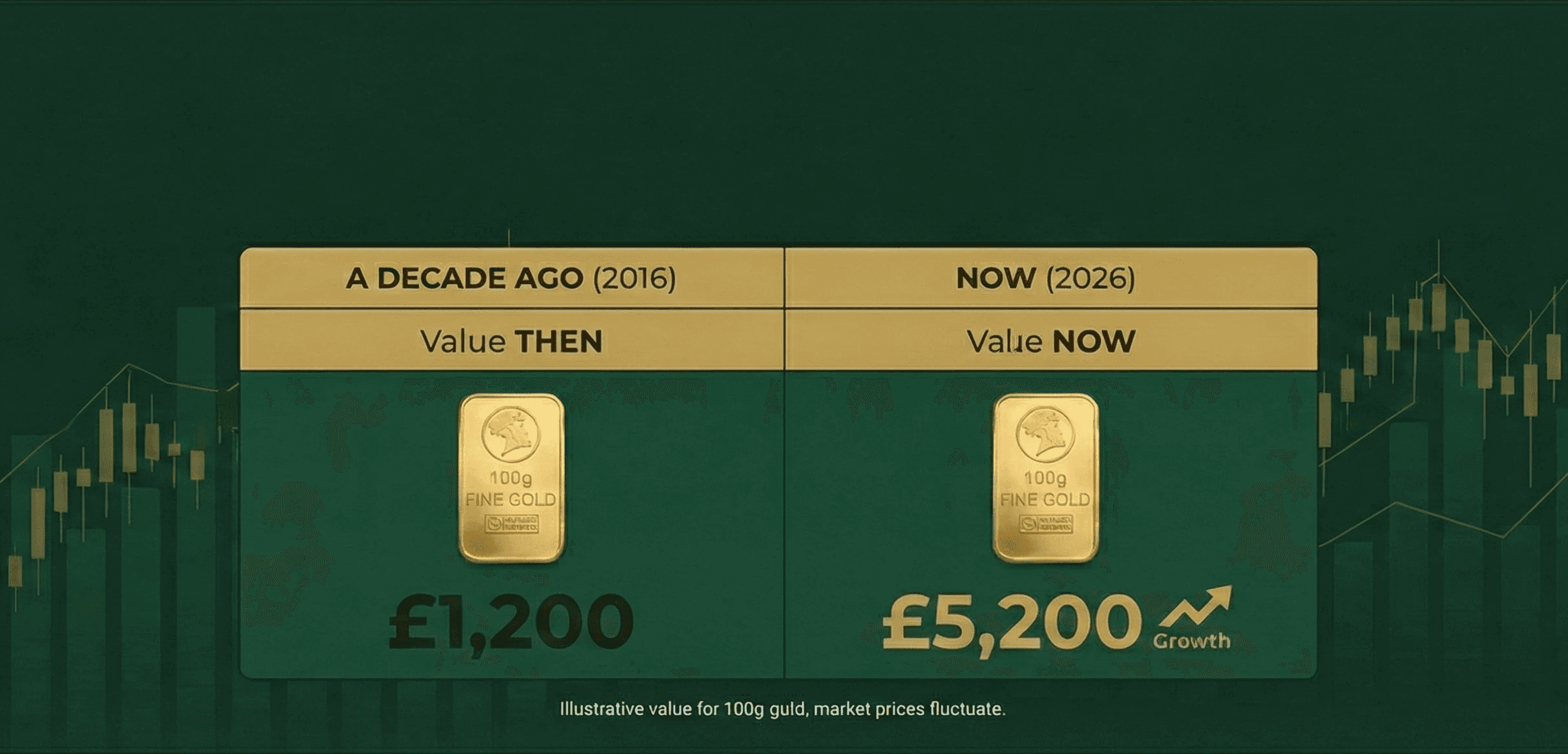 A typical collection of unused gold jewellery worth £1,200 a decade ago could now be worth significantly more. Our mission is to ensure you capture that growth with a fair, transparent market offer.